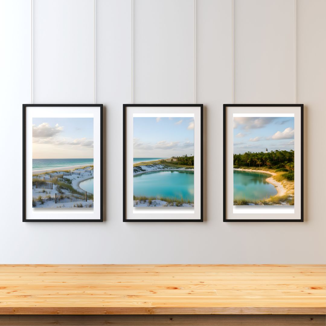 Beach and lake Continuous 3 Piece Wall Art | Coastal Triptych Print Set | Ocean Waves Wall Decor | Neutral Beach Landscape Prints | Modern Seaside Home Decor | Digital Download.