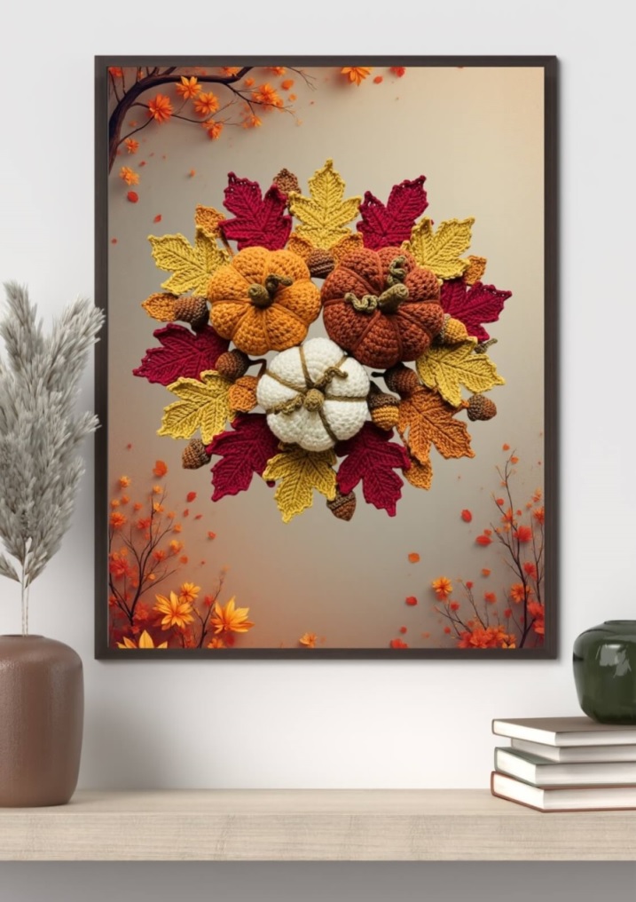 Bring warmth, charm, and handmade coziness to your home with this Crochet Wall Art Set of 3. Each piece captures the timeless beauty of crochet craftsmanship — featuring a coffee cup, pumpkin on floral leaves, and a crochet tea cup — perfect for creating a relaxing and inviting atmosphere in your kitchen, dining room, craft room, or coffee nook.