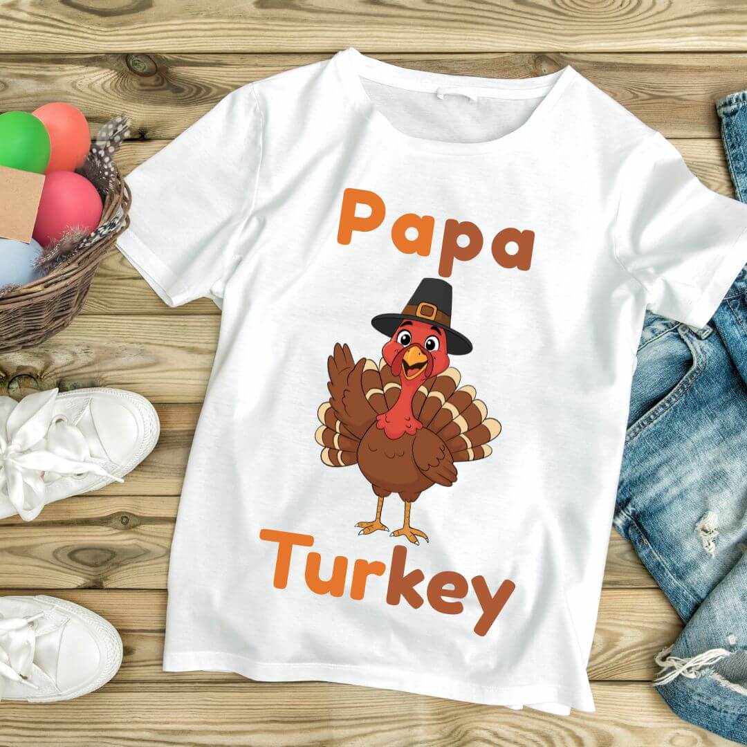 Bring Thanksgiving joy to your store with this adorable **Mama, Papa, Baby Turkey T-Shirt Design**! Perfect for fall family photos, Thanksgiving gatherings, matching outfits, and festive holiday apparel. This digital download includes high-quality files ready for printing on t-shirts, hoodies, mugs, and more.